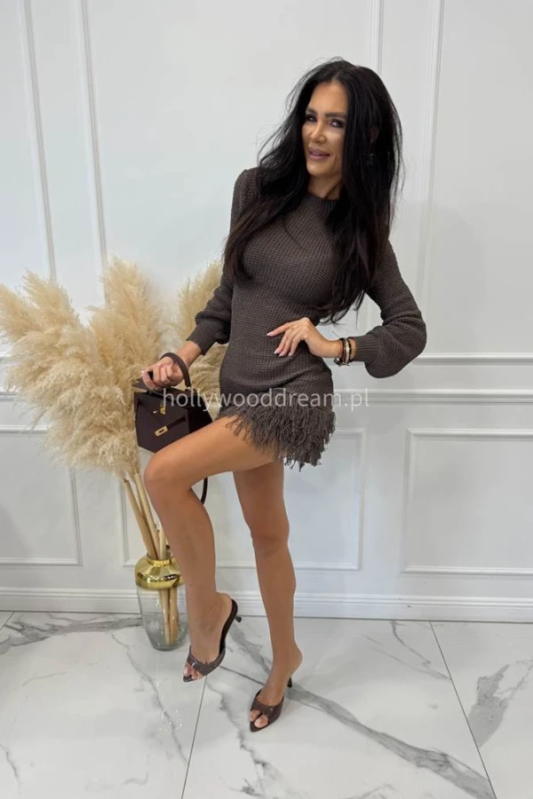Sukienka dzianinowa z postrzępionym dołem czekoladowa KASJA 09