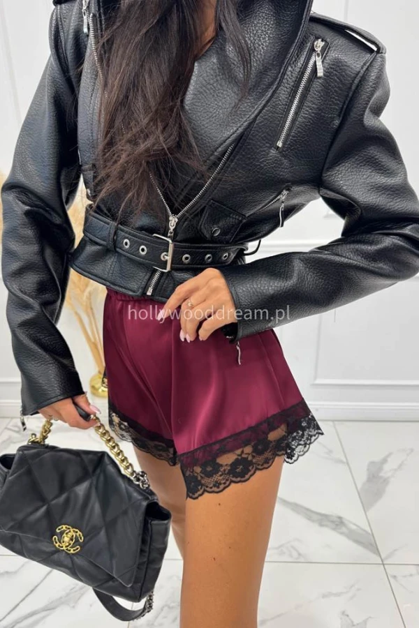 Bordowe spodenki satynowe wykończone koronką MARBELA 173