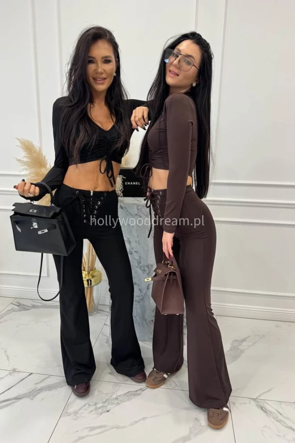 Czarne legginsy dzwony z wiązaniem w talii Albina 29