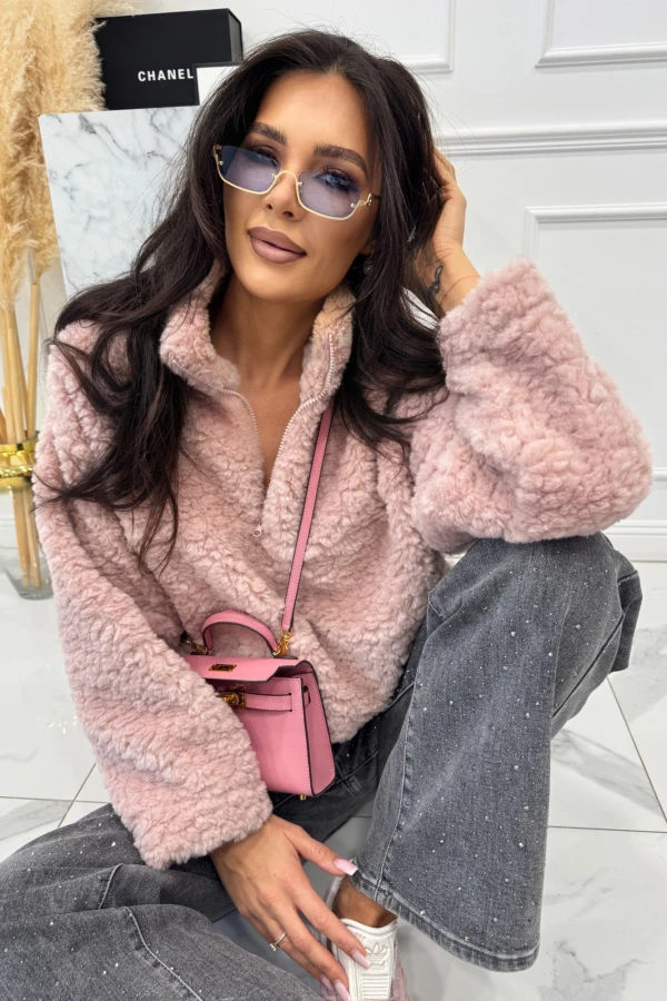 Różowy baranek bluza ze ściągaczem Sammy