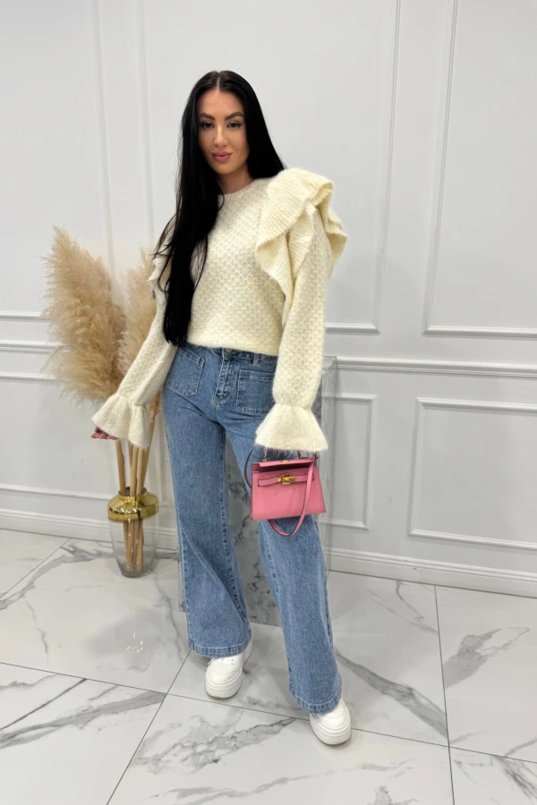 Sweter z falbaną na ramionach Musa kremowy