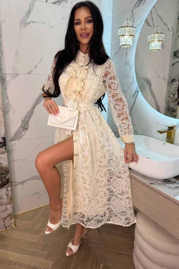 - sukienka koronkowa z paskiem Catherine jasnobeżowa