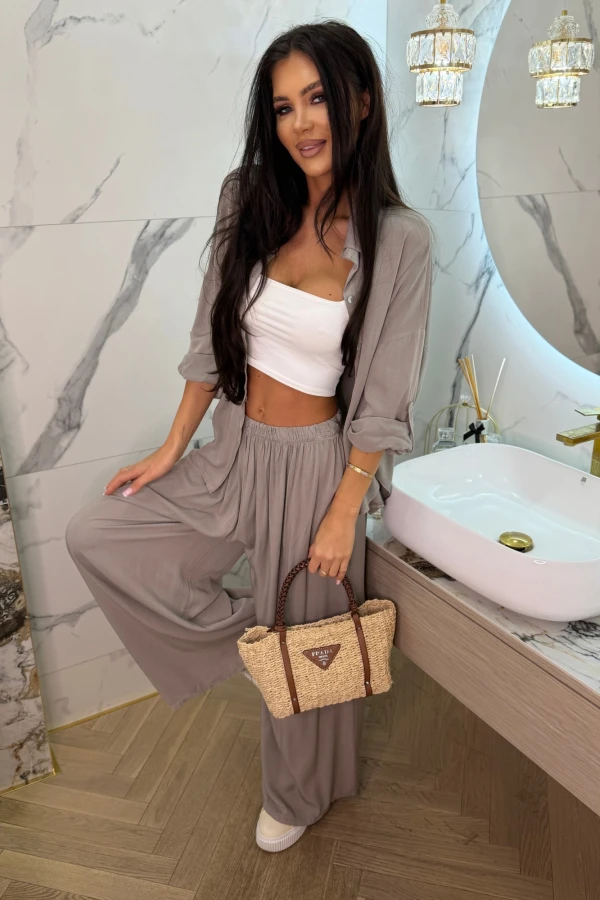 Komplet koszula + spodnie palazzo Lunea fango