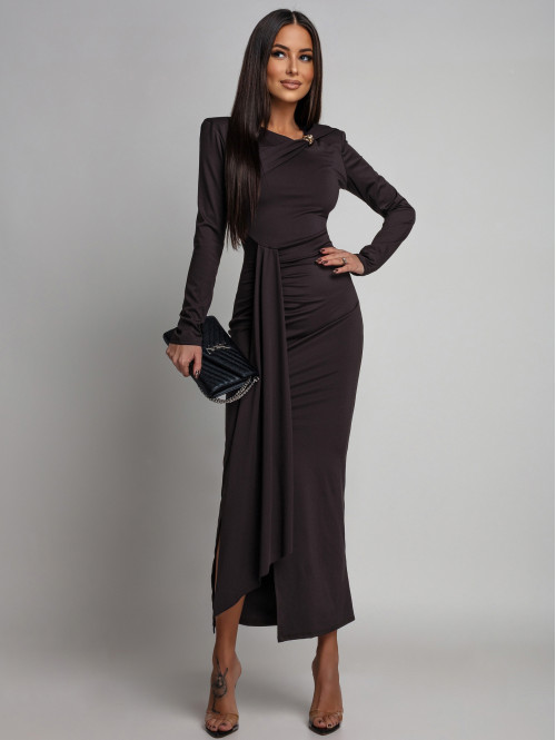 Sukienka z drapowaniem na dole OLUSJA czekoladowa 17